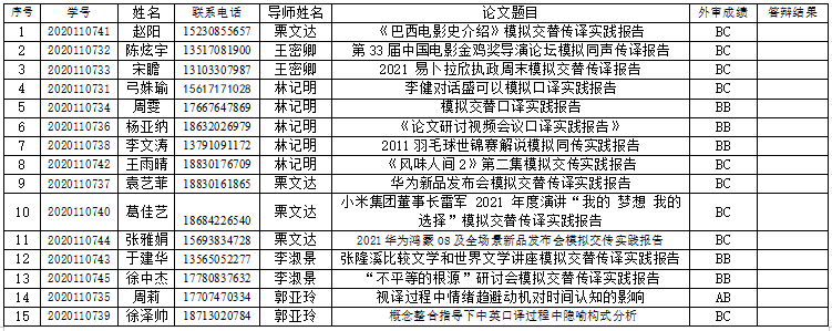 俄语语言文学答辩时间:5月21日14:00开始