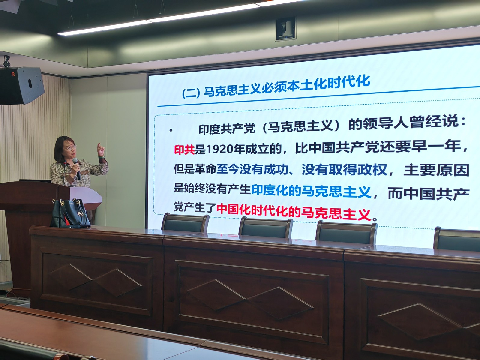 杨辉教授就谱写马克思主义中国化时代化新篇章、推动马克思主义中国化时代化的密码以及习近平新时代中国特色社会主义思想的世界观和方法论等内容进行了深入浅出的讲解。她指出,实践告诉我们,中国共产党为什么能,中国特色社会主义为什么好,归根到底是马克思主义行,是中国化时代化的马克思主义行;推动马克思主义中国化时代化的蓬勃生机和旺盛活力的密码是同中国具体实际相结合、同中华优秀传统文化相结合。最后,杨教授强调,学习习近平新时代中国特色社会主义思想的世界观和方法论,要紧密联系实际,鼓励大家要勇于实践、积极探索,把习近平新时代中国特色社会主义思想真正融入到日常生活中,做到知行合一。
