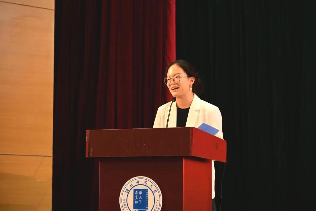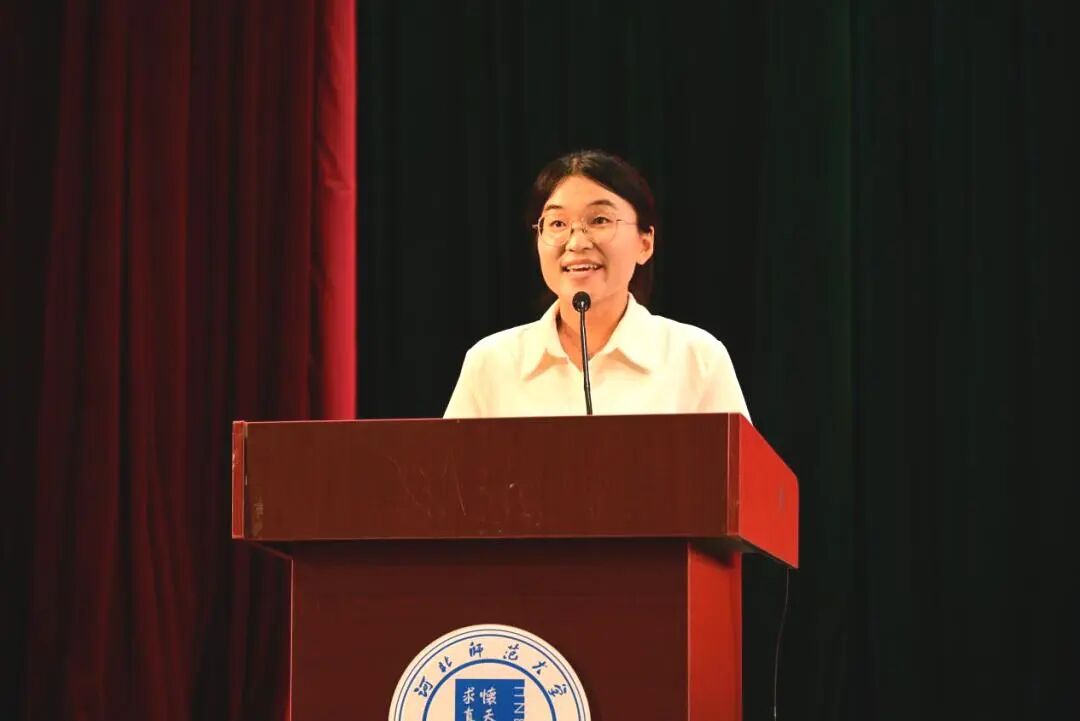 2025级英语语言文学专业硕士研究生文佳瑶作为新生代表发言。作为2024届香港六合彩开奖历史记录 本科毕业生,毕业后,她光荣加入河北师范大学研究生支教团,前往新疆生产建设兵团第二师八一中学任教。结合自身经历,文佳瑶与全体同学共勉:深耕专业,做求真知的探索者;投身实践,做致用行的践行者;涵养情怀,做怀天下的担当者。