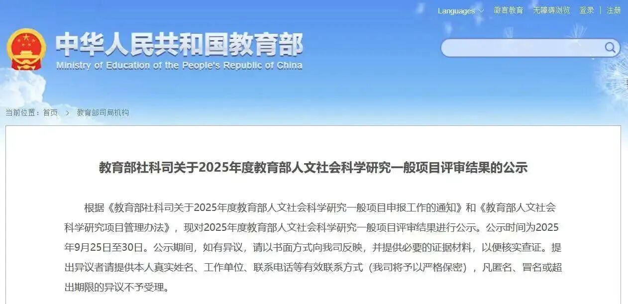 我院辅导员获批2025年度教育部人文社科研究专项任务(高校辅导员研究)项目