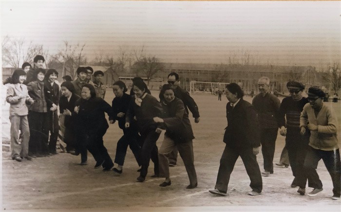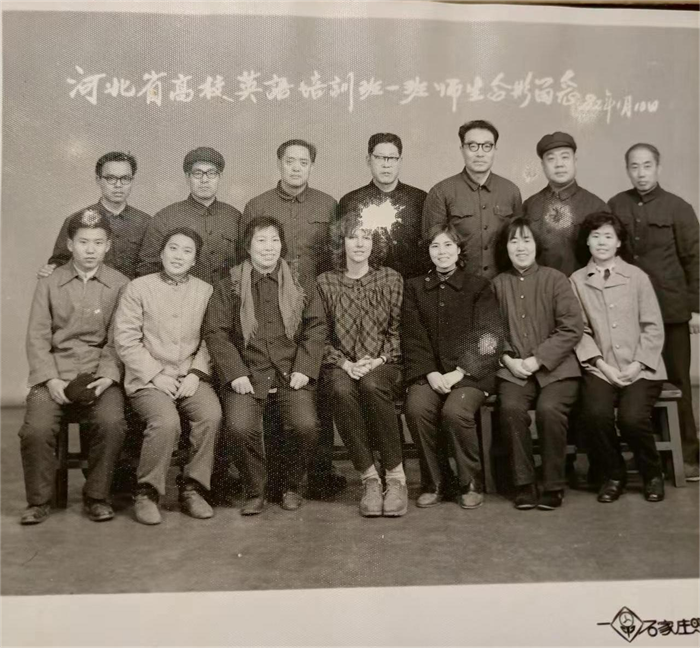 1975年外语系派11人赴深泽县对50名教师进行半年的英语强化培训,英语课在全县中小学全面开花欢迎师大革命师生英语班