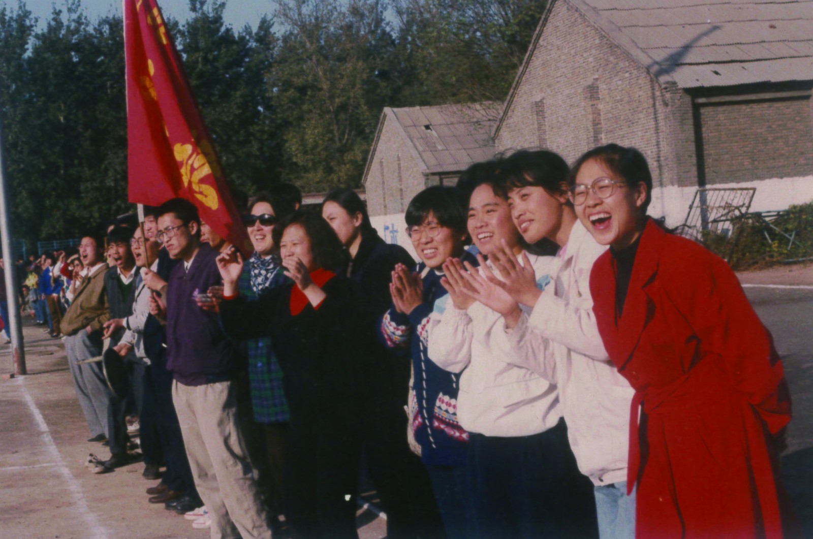 时任党总支副书记李雪梅老师,足球队主教练,时任团委书记九一九三辅导员赵颖楠老师和其他辅导员与大家一同庆祝胜利