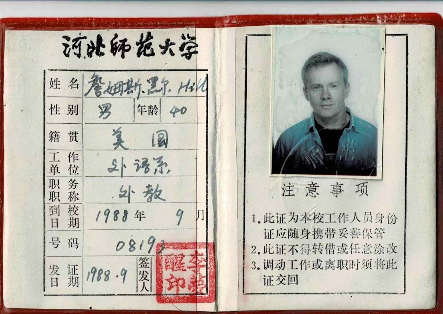 外教Jim Hill 在师大的工作证